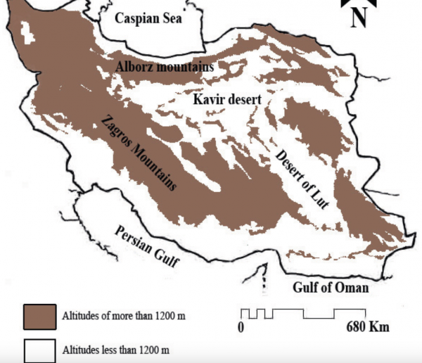 Sự kết hợp giữa hai hệ thống núi lớn, một ở phía Tây và một ở phía Bắc, đã tạo nên cấu trúc địa lý đặc biệt, khiến lãnh thổ Iran được bao bọc bởi các bức tường đá khổng lồ, nơi bất kỳ lực lượng tấn công nào cũng phải vượt qua nhiều lớp chướng ngại tự nhiên. Thậm chí, nếu vượt qua Zagros hay Alborz, lực lượng tấn công bộ binh vẫn chưa thể tiếp cận ngay các trung tâm quyền lực của Iran, bởi phía sau những “bức tường” đó là cao nguyên Iran rộng lớn trải dài khắp phần trung tâm đất nước, có độ cao trung bình từ 900–1.500m so với mực nước biển.