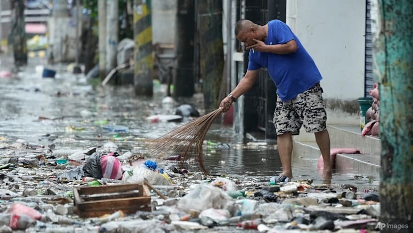 Đường phố ngập rác sau trận bão lớn ở Navotas, Philippines. Ảnh: CNA.