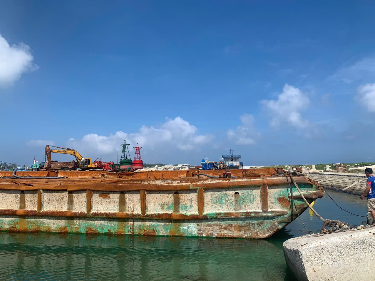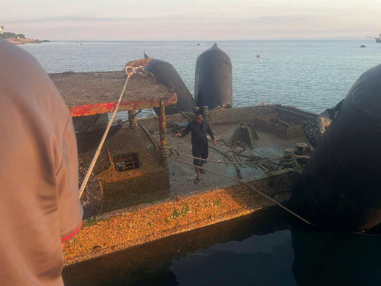 Tàu kéo và sà lan đã được trục vớt đưa về đảo Lý Sơn để phục vụ công tác điều tra.