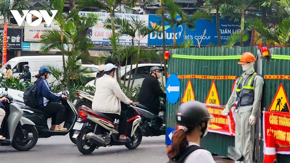 Đoạn từ nút giao Nguyễn Trãi - Vũ Trọng Phụng đến cầu bộ hành phía trước Trường Đại học Khoa học xã hội và Nhân văn (dài 317m), nhà thầu rào chắn di động, thi công cuốn chiếu theo từng phân đoạn dài 10m, rộng 4m. Bề rộng mặt đường còn lại khoảng 16-18m.