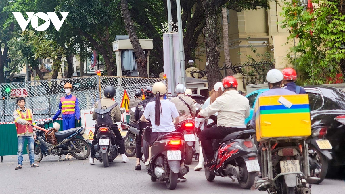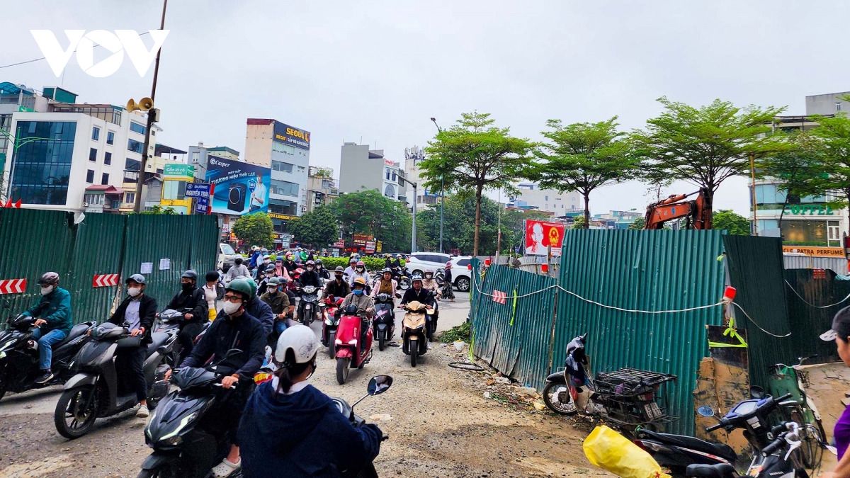 Theo anh Minh, tại nút giao Nguyễn Trãi - Giáp Nhất vỉa hè, lòng đường bị lô cốt chiếm dụng khiến người đi bộ phải tràn xuống lòng đường, di chuyển ngược chiều gây gia tăng áp lực giao thông... Mặt đường bị thu hẹp, các làn xe bị dồn lại, khiến việc lưu thông trở nên khó khăn.