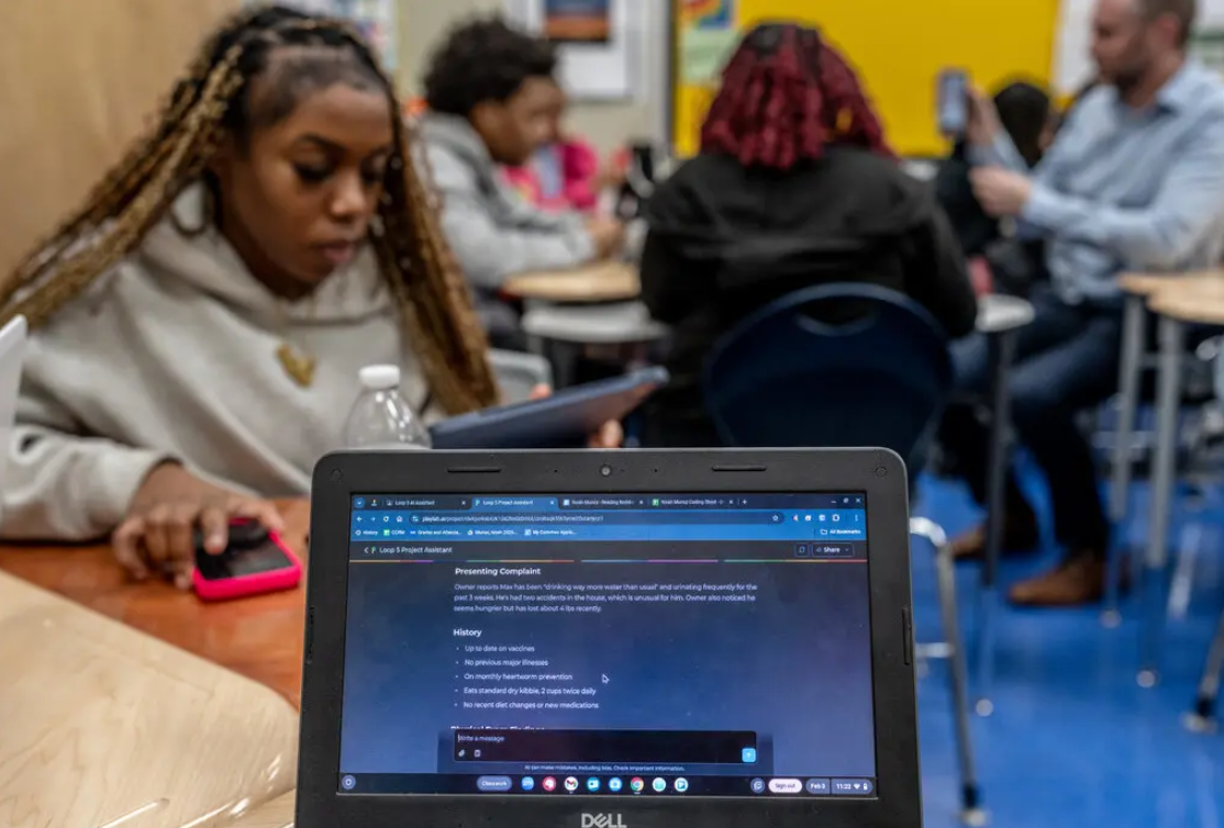 Học sinh tại trường trung học North Star Academy Washington Park ở Newark sử dụng chatbot AI để trau dồi kỹ năng viết của mình. Ảnh: The New York Times