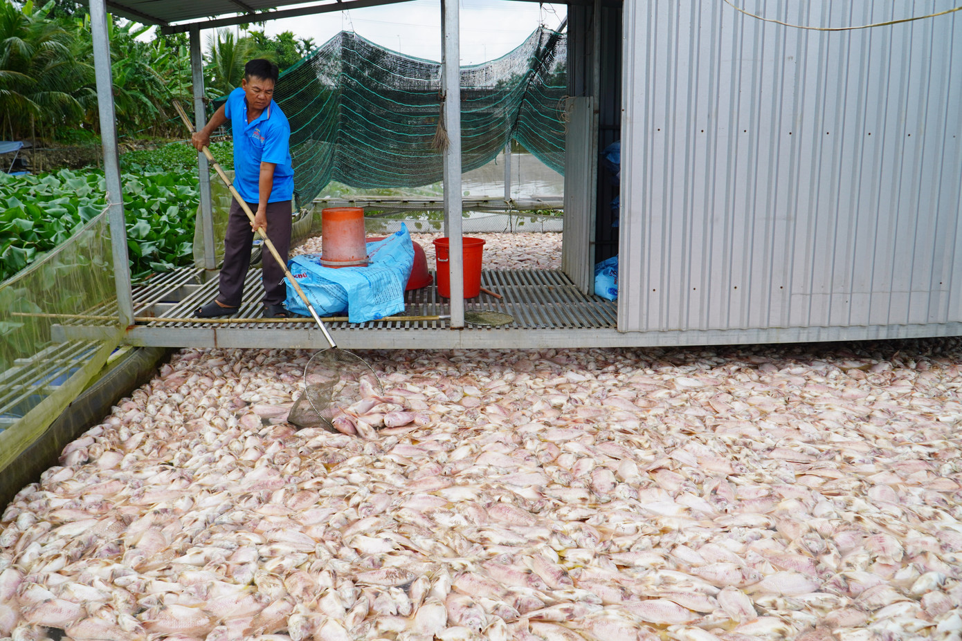 Cùng ở phường Hưng Phú, anh Huỳnh Văn Mười Một cho biết, đợt đó (ngày 30/10) bị ngộp nước rồi chết số lượng lớn, đến nay cá bị nổ mắt, cứ hao dần. "Tôi nuôi cá mười mấy năm nay chưa bị cá chết nhiều như vậy bao giờ”, anh Một nói.