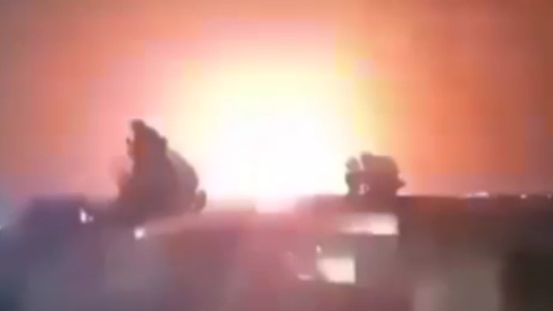 HÌnh ảnh được cho là tên lửa Iran dội xuống căn cứ Mỹ tại Bahrain