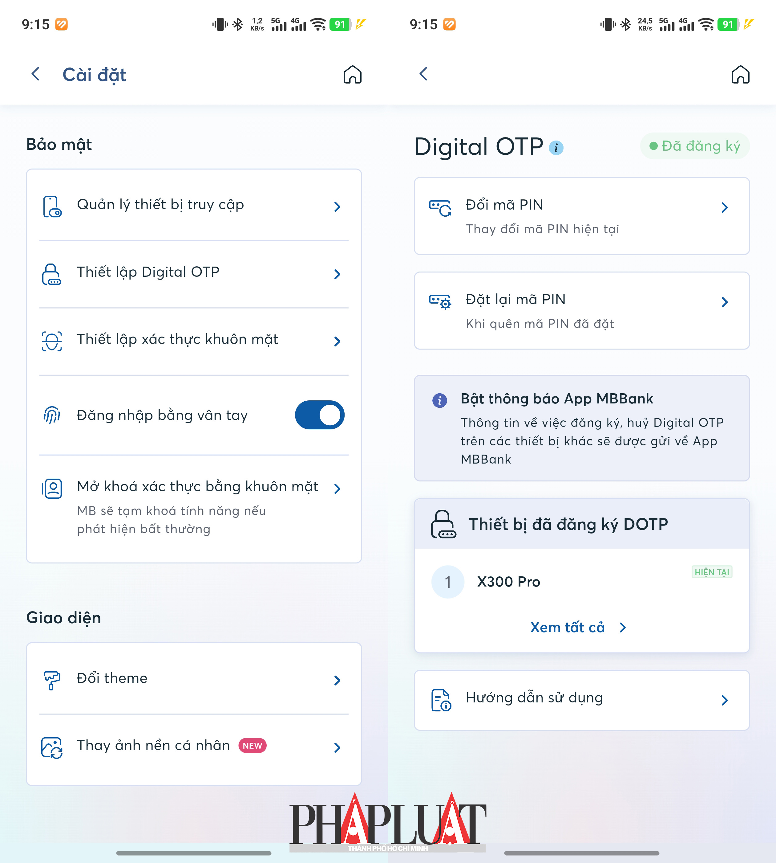 Cách thiết lập để nhận OTP trực tiếp trên ứng dụng ngân hàng. Ảnh: MINH HOÀNG