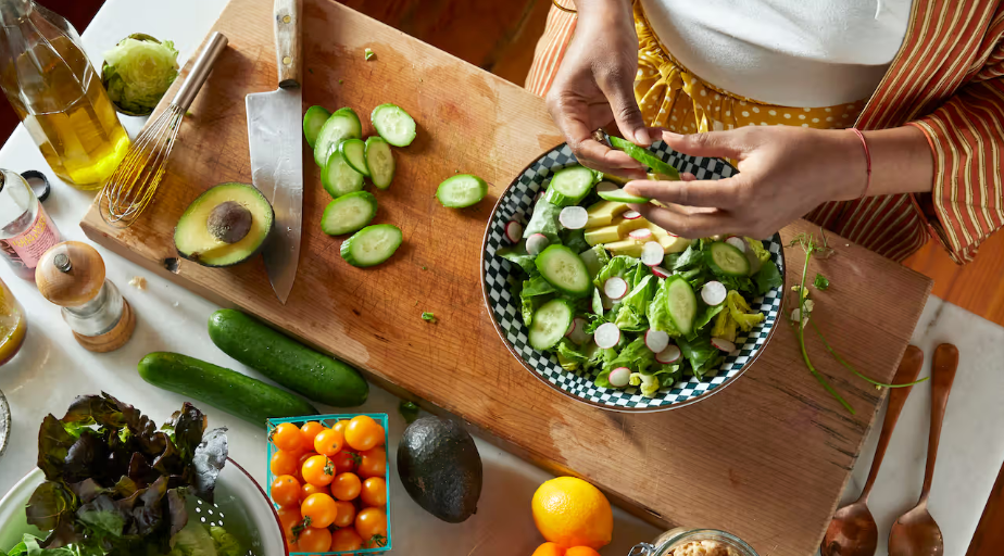 Bắt đầu bữa ăn với rau không chỉ giúp hoàn thành khuyến nghị ăn 3-5 khẩu phần rau mỗi ngày mà còn giúp duy trì đường huyết ổn định trong suốt bữa ăn. Rau chứa nhiều chất xơ và nước, mang lại các lợi ích cụ thể: