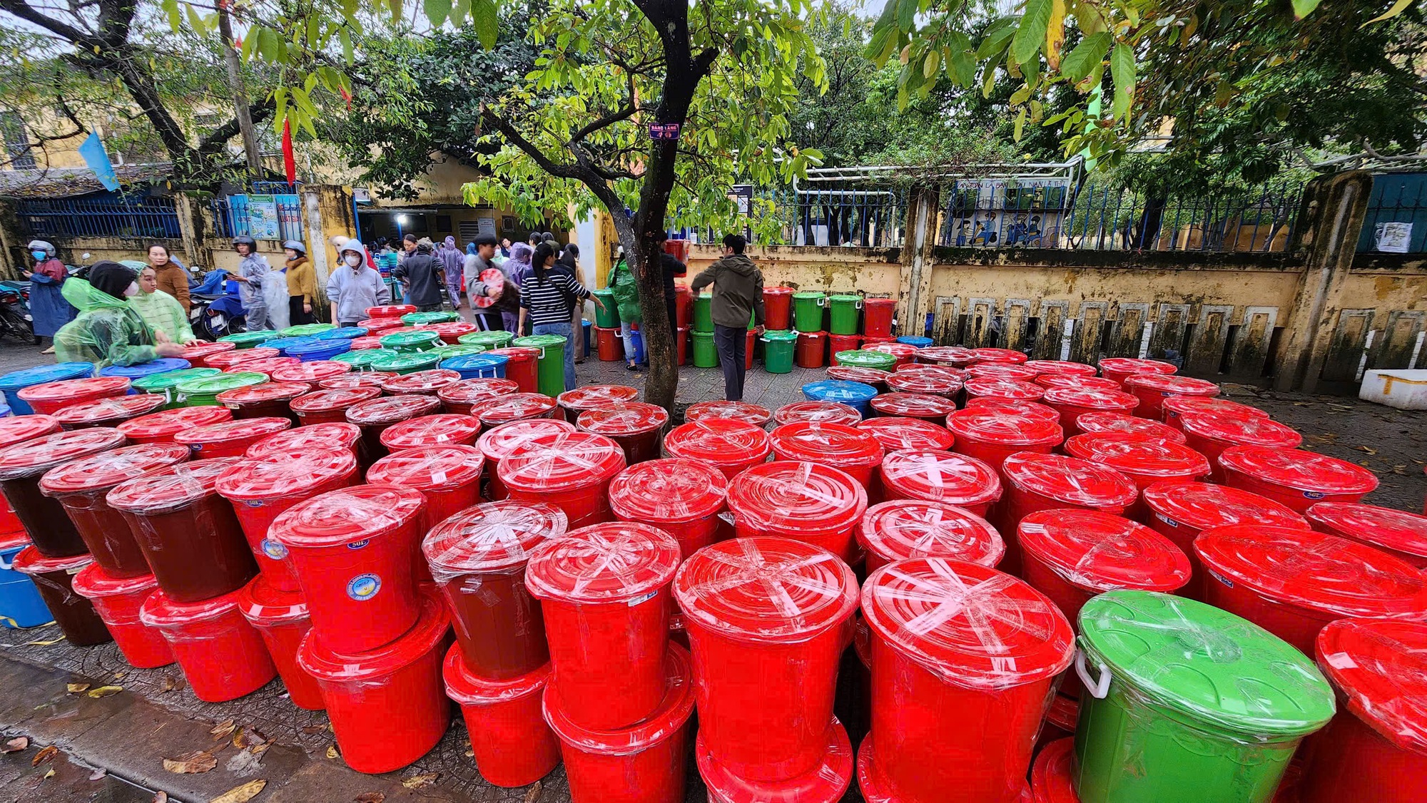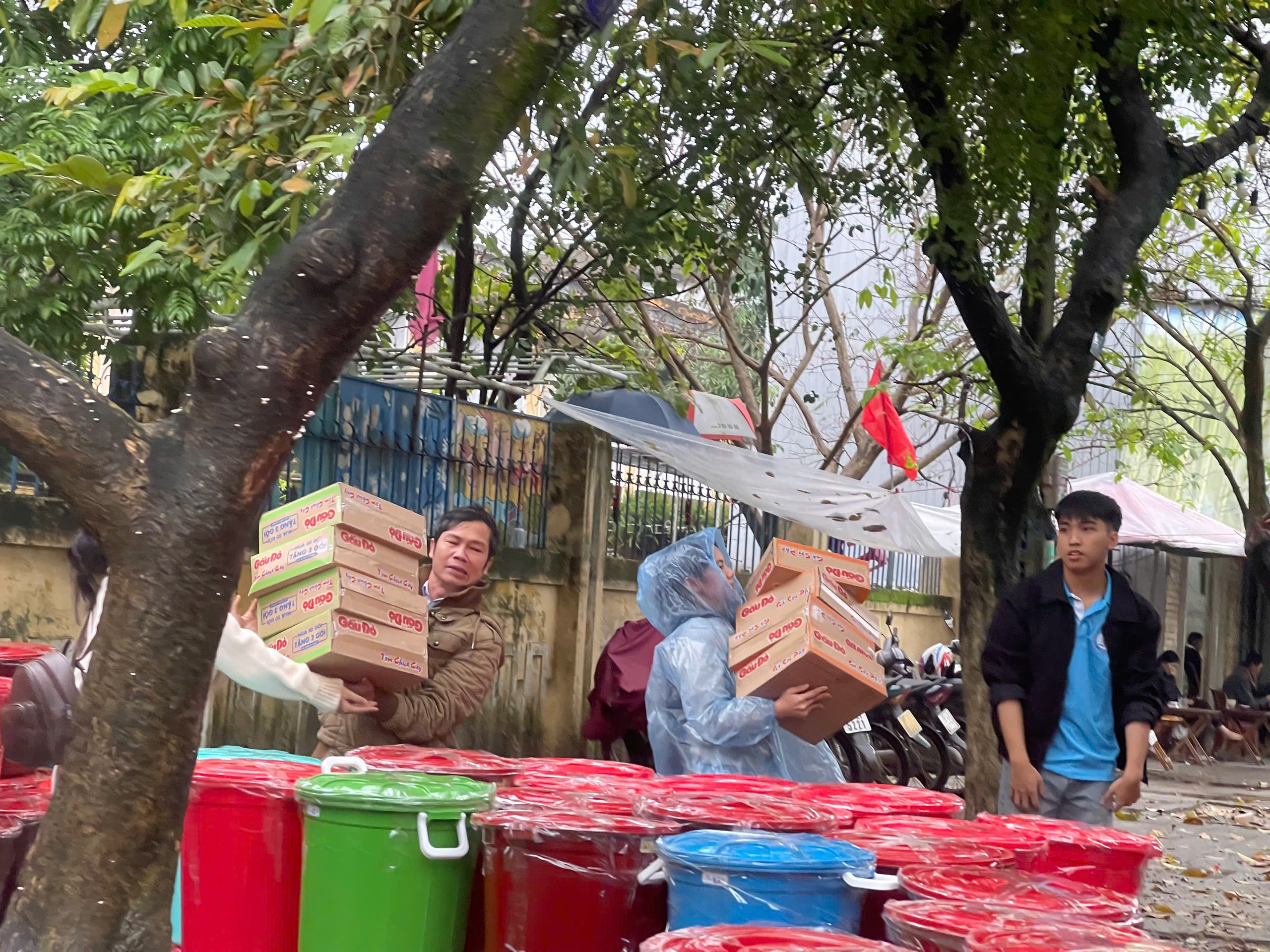 Những thùng nhựa cỡ lớn để đựng hàng cứu trợ