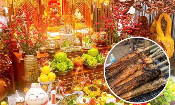 Mâm cúng ngày Vía Thần tài có cá lóc nướng - Ảnh: T.L