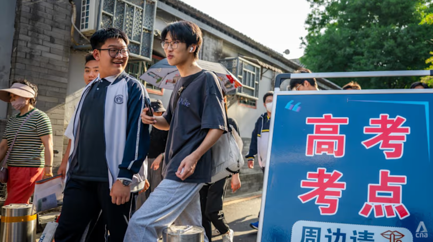 Học sinh rời khỏi phòng thi sau khi làm bài thi Cao khảo tại Trường Trung học cơ sở số 2 Bắc Kinh, ngày 8/6/2025. Ảnh: CNA