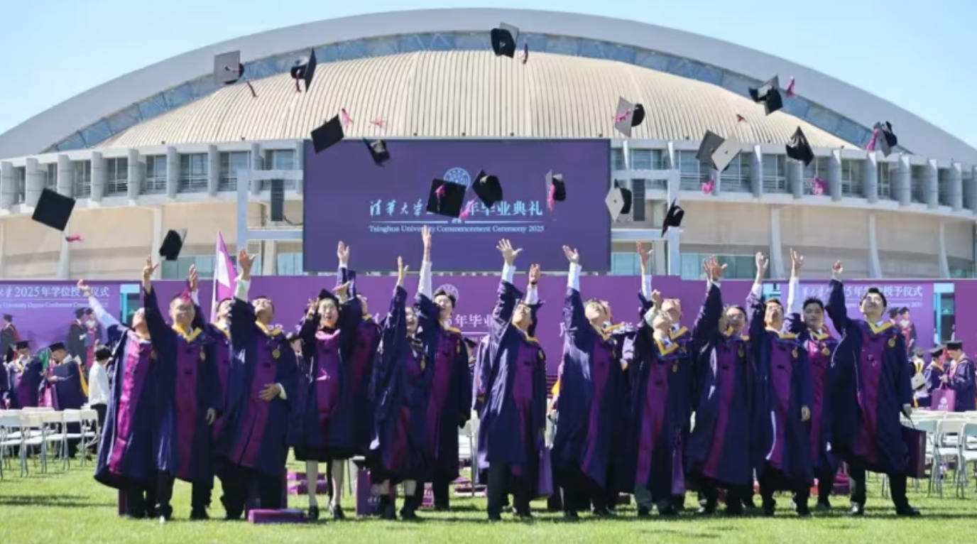 Sinh viên khóa 2025 của Đại học Thanh Hoa tung mũ ăn mừng tại lễ tốt nghiệp ở Bắc Kinh. Ảnh: IG/tsinghua_uni