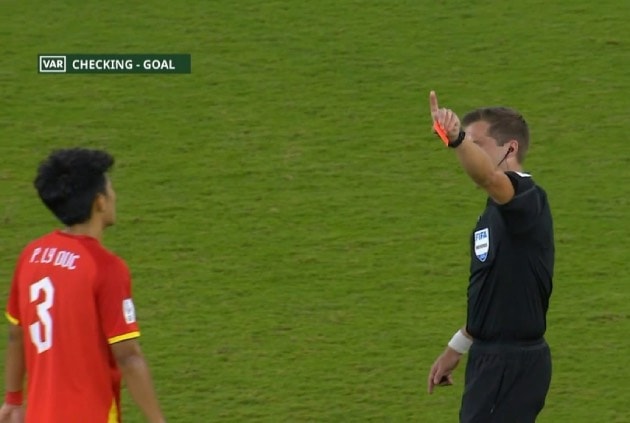 Quyết định truất quyền thi đấu được đưa ra ngay lập tức trong bối cảnh các cầu thủ Trung Quốc đang ăn mừng bàn thắng nâng tỷ số lên 3-0. Tuy nhiên, kịch tính chỉ thực sự bắt đầu khi tổ VAR can thiệp để kiểm tra tính hợp lệ của bàn thắng trước đó.
