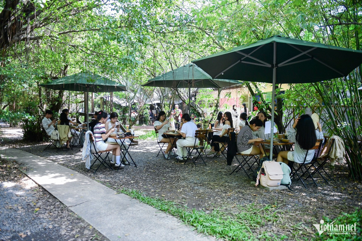 Điểm đặc biệt của quán không chỉ là món ăn mà còn là không gian xanh mát, nằm trong khu phức hợp với sân vườn rộng, nhiều cây cối, mang đến cảm giác thư thái như giữa rừng. Ảnh Báo Vietnamnet