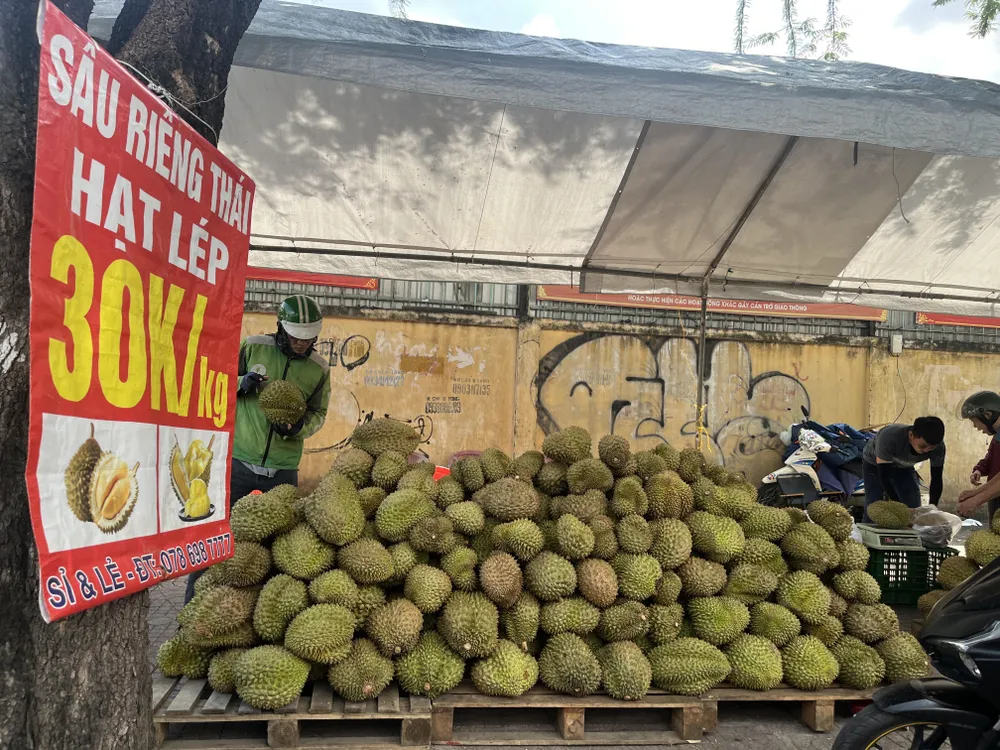 Thời gian gần đây, trên địa bàn TP.HCM xuất hiện các điểm bán sầu riêng 'khổng lồ' được quảng cáo là hạt lép với giá rất rẻ, chỉ từ 25.000 - 30.000 đồng/kg.