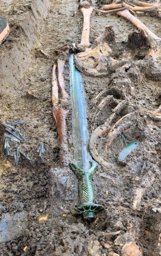 Đó là một thanh kiếm cổ ước tính có niên đại khoảng 3.000 năm tuổi, và hiện vật này đang trong tình trạng bảo quản tốt đến mức gần như vẫn còn sáng bóng. Ảnh: @Văn Phòng Bảo Vệ Di Tích Bang Bavaria.