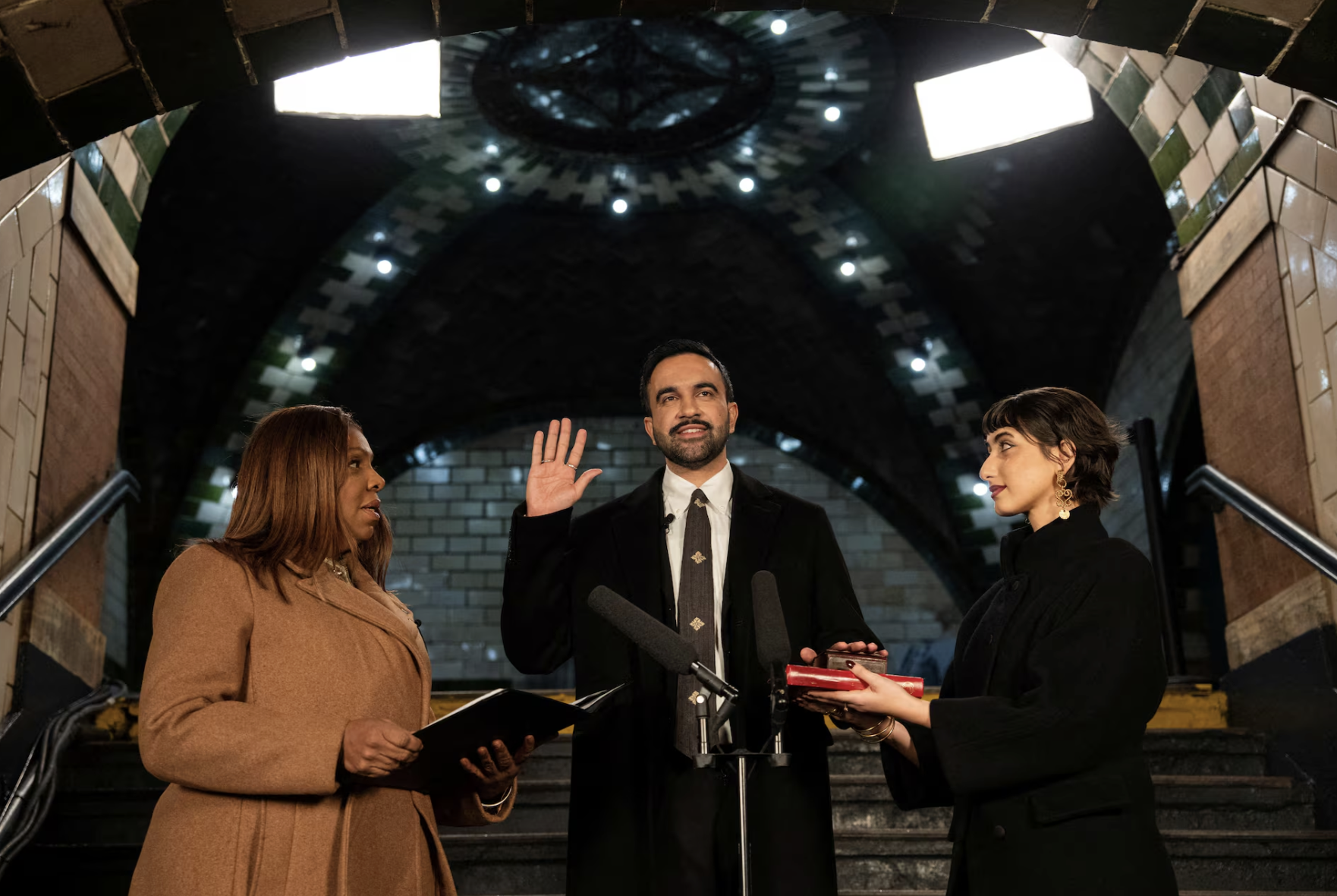 Phát biểu tuyên thệ dưới vòm của nhà ga tàu điện ngầm với dòng chữ City Hall, ông Zohran Mamdani gửi lời chúc mừng năm mới tới toàn thể người dân New York, cam kết ủng hộ Hiến pháp Mỹ và luật pháp bang New York. Ông nhấn mạnh đây thực sự là vinh dự, đặc ân của cả một đời người.