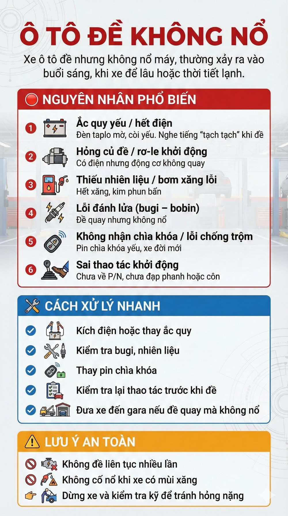 I. Ô TÔ ĐỀ KHÔNG NỔ: NGUYÊN NHÂN & CÁCH XỬ LÝ