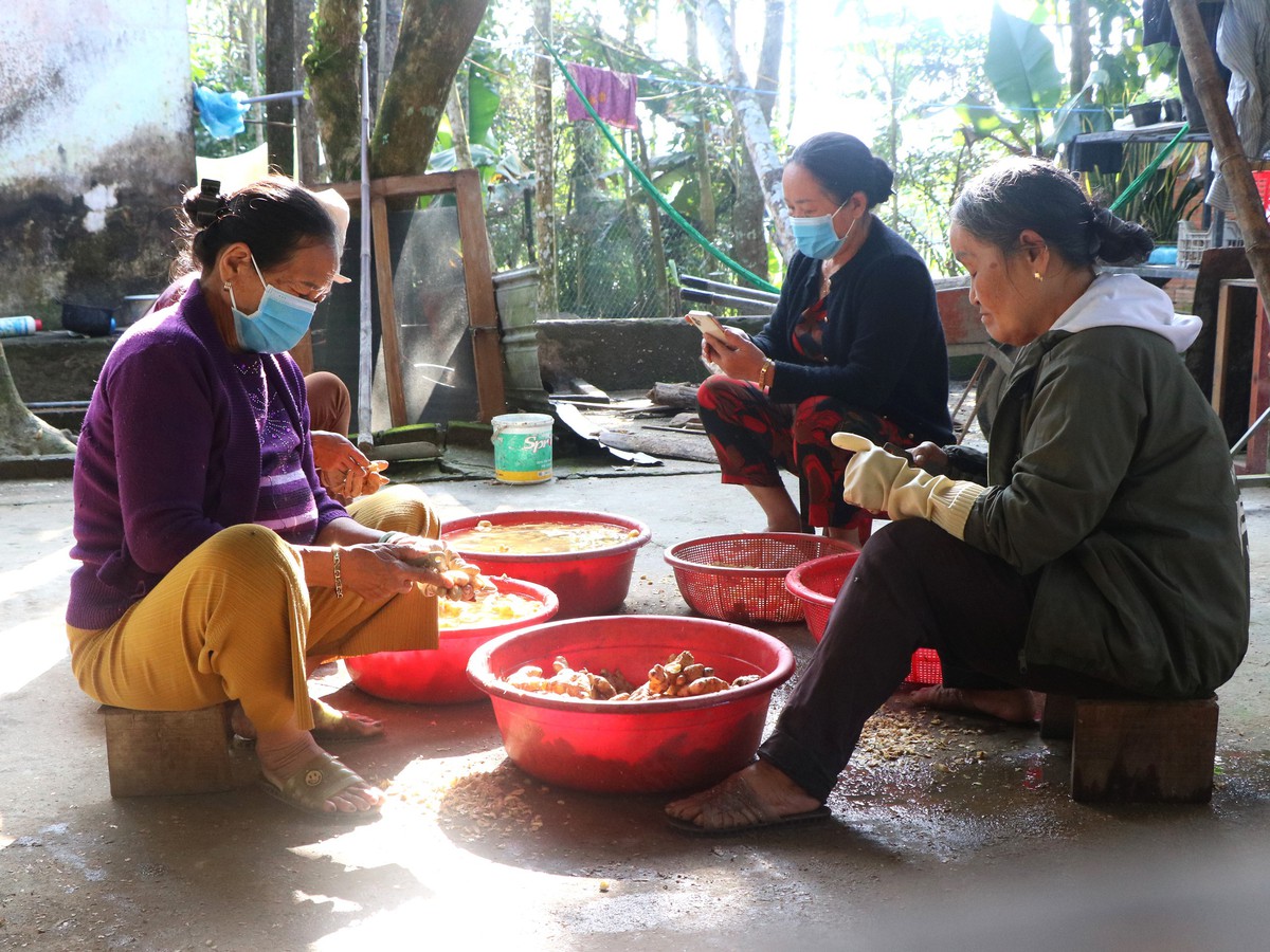 Hiệu quả của mô hình được thể hiện qua những con số: Mỗi mùa Tết, Tổ hợp tác giải quyết việc làm cho nhiều phụ nữ địa phương. Đơn cử tại cơ sở sản xuất bánh mứt của bà Nguyệt, khoảng 8-10 lao động nữ đến làm việc với mức thu nhập ổn định 250.000 đồng/ngày/người.