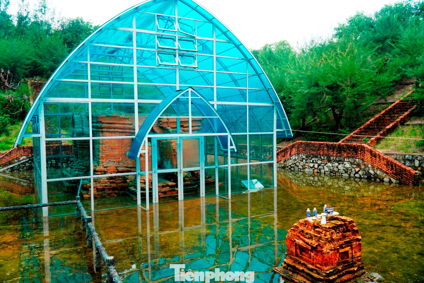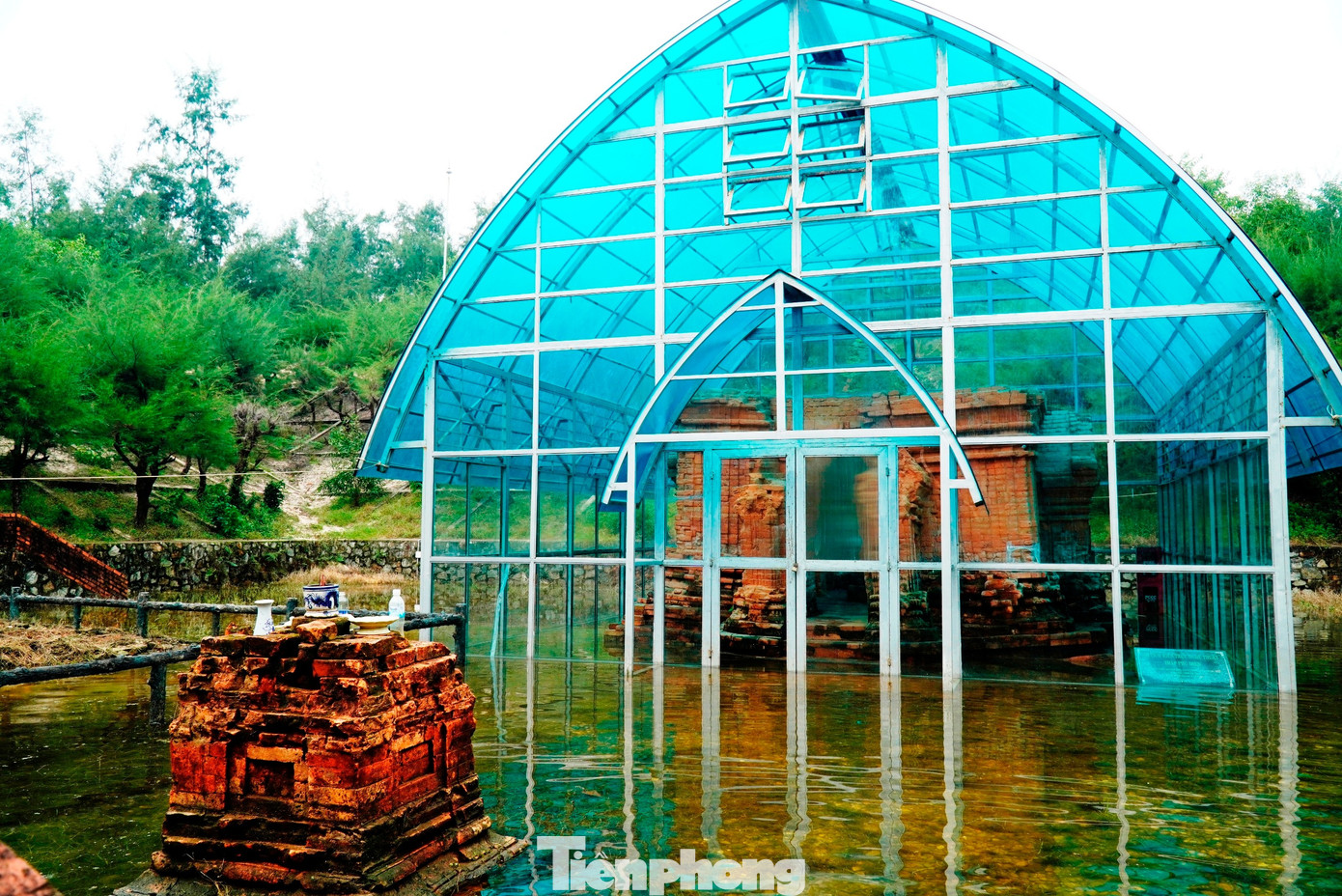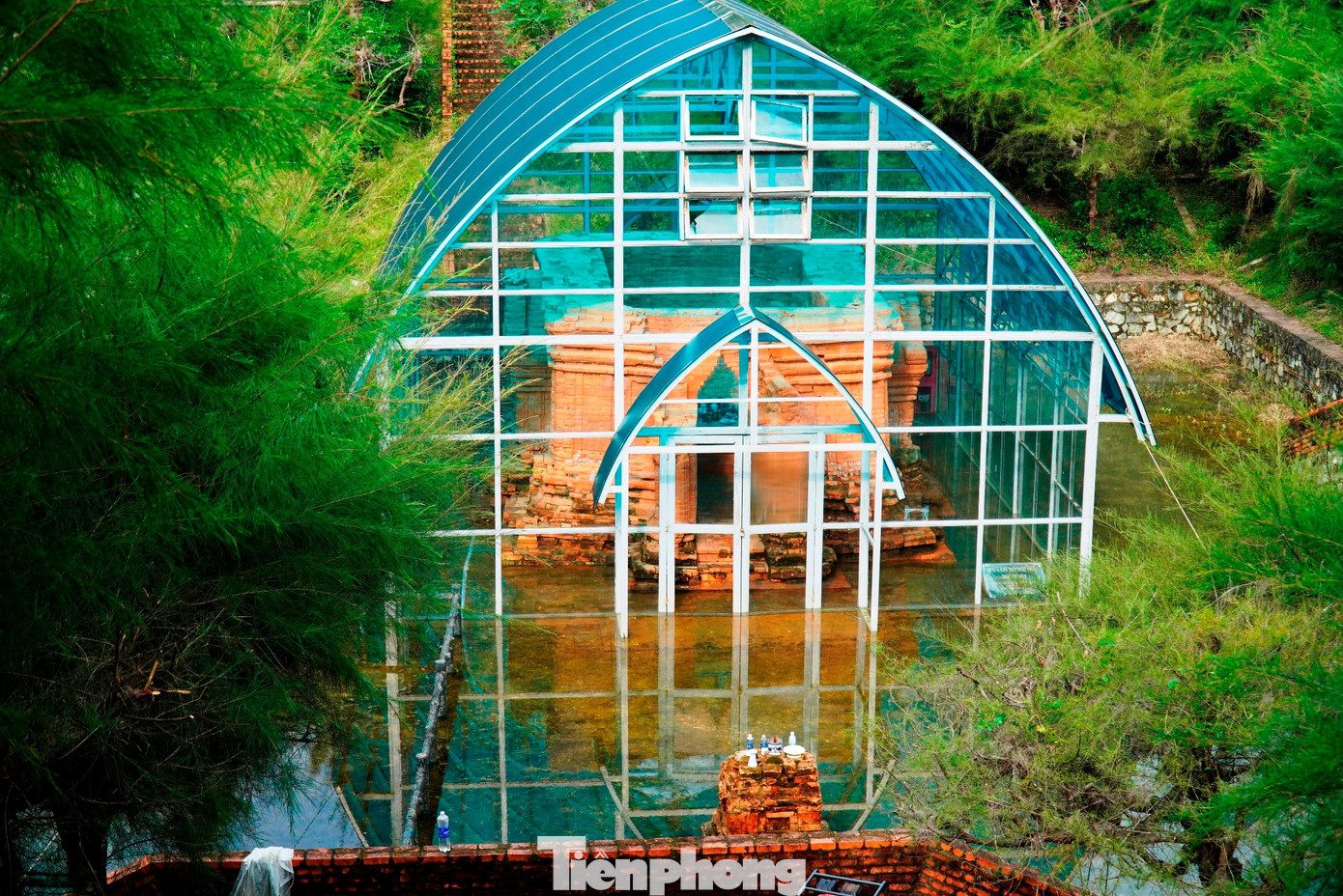 Trước đó, như Tiền Phong phát hiện và phản ánh, tháp Chăm Phú Diên - di tích hơn nghìn năm tuổi - bị ngâm trong nước suốt nhiều ngày do mưa lớn kéo dài. Có thời điểm mực nước dâng gần nửa thân tháp, khiến người dân lo ngại nền móng gạch cổ có thể mục rữa, sụt lún, thậm chí sập đổ.