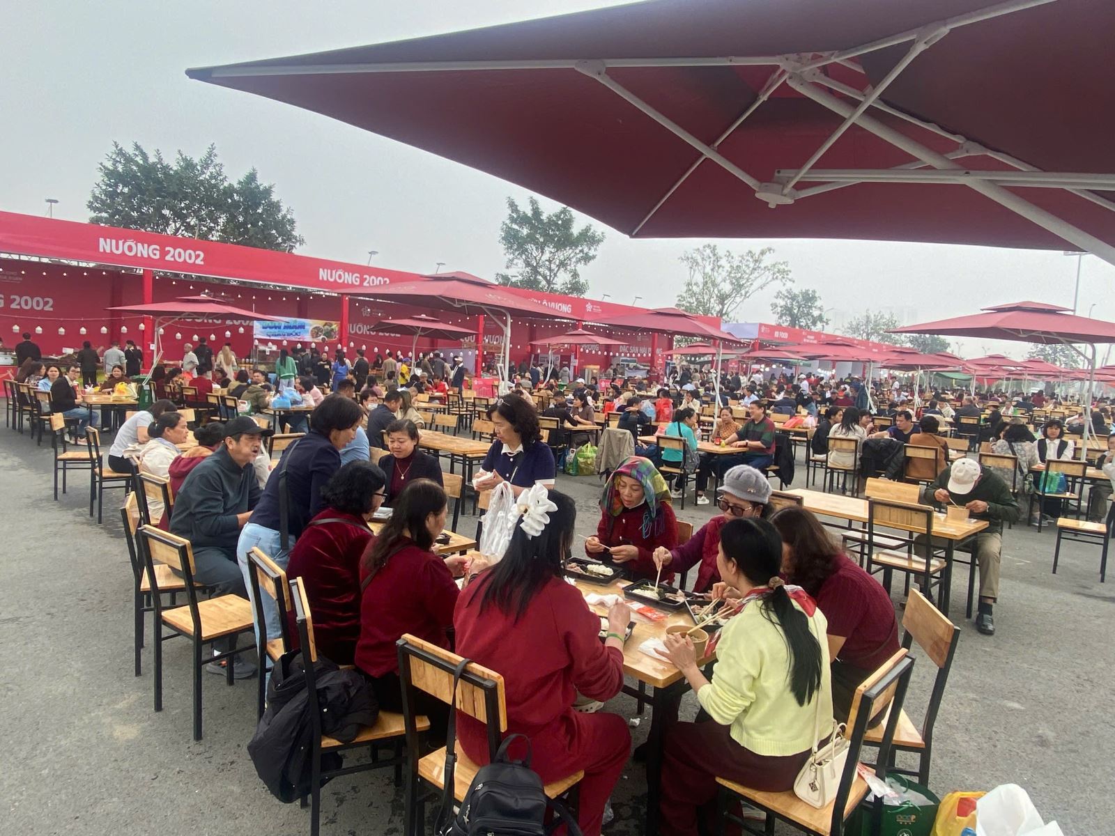 Tại Hội chợ Mùa Xuân 2026, bên cạnh các không gian trưng bày trong nhà, khu vực ngoài trời với phân khu “Vị Xuân gắn kết” trở thành điểm dừng chân rộn ràng, nơi người dân và du khách cùng quây quần thưởng thức những món ăn đặc sắc, giao lưu và cảm nhận trọn vẹn không khí lễ hội đầu năm.
