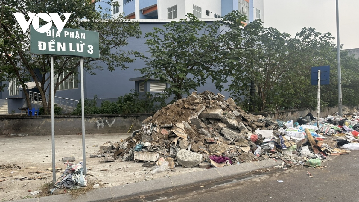 Phế thải sau khi cải tạo, sửa chữa vỉa hè lại được chất đống trên vỉa hè.
