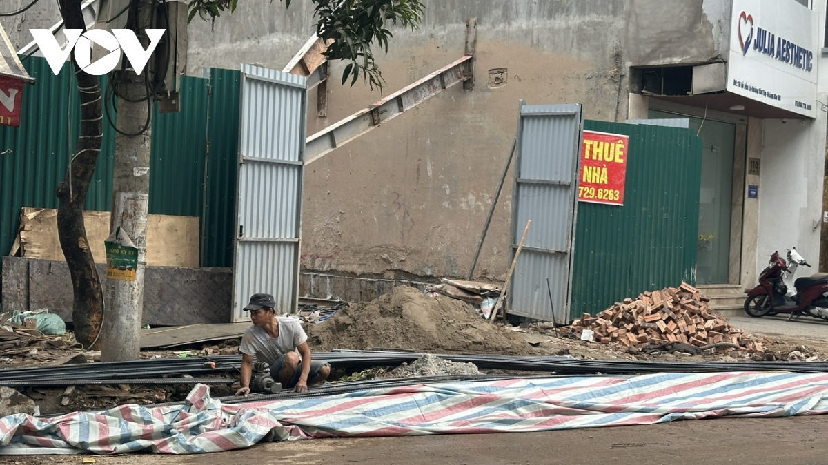 Cát, xi măng, đá xây dựng phủ kín suốt dọc đoạn phố khiến bụi bẩn khu vực này luôn ở mức cao. Thực trạng công trường thi công thiếu che chắn đang làm trầm trọng thêm ô nhiễm bụi mịn tại Hà Nội, trái với yêu cầu kiểm soát nghiêm ngặt mà thành phố vừa ban hành, rất cần được chính quyền xử lý khẩn cấp để bảo vệ sức khỏe người dân.