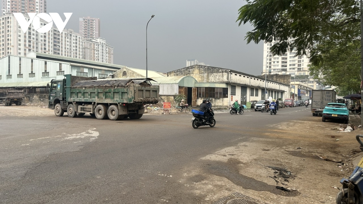 Nhiều xe tải chở đất cát, vật liệu rời từ công trường lưu thông với thùng không che đậy kín. Bùn đất bám vào bánh xe khô lại, vung vãi ra mặt đường, tạo nên lớp bụi mịn gây ô nhiễm, trơn trượt khi mưa.