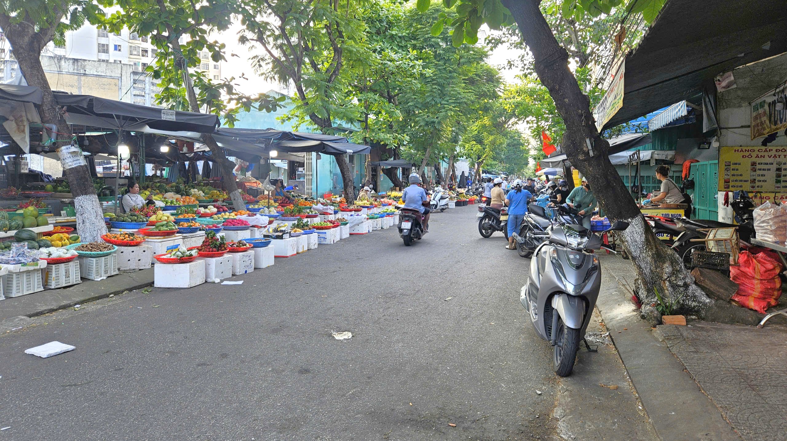 Tuyến đường Ngô Trí Hòa bên ngoài chợ Nại Hiên Đông, phường Sơn Trà đã trở nên dễ thở hơn khi các quầy buôn bán lùi sâu vào bên trong vỉa hè. Ảnh: TẤN VIỆT