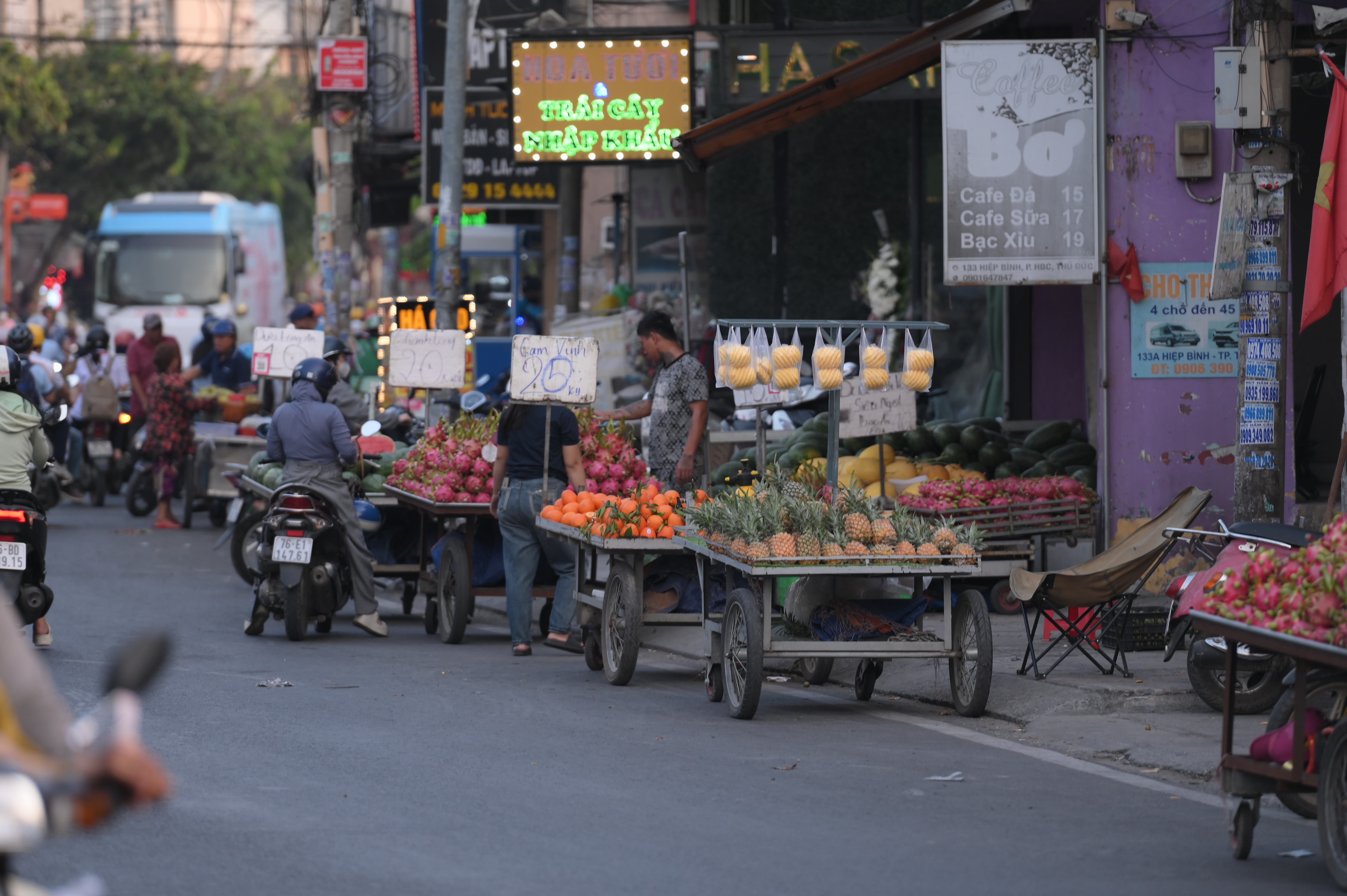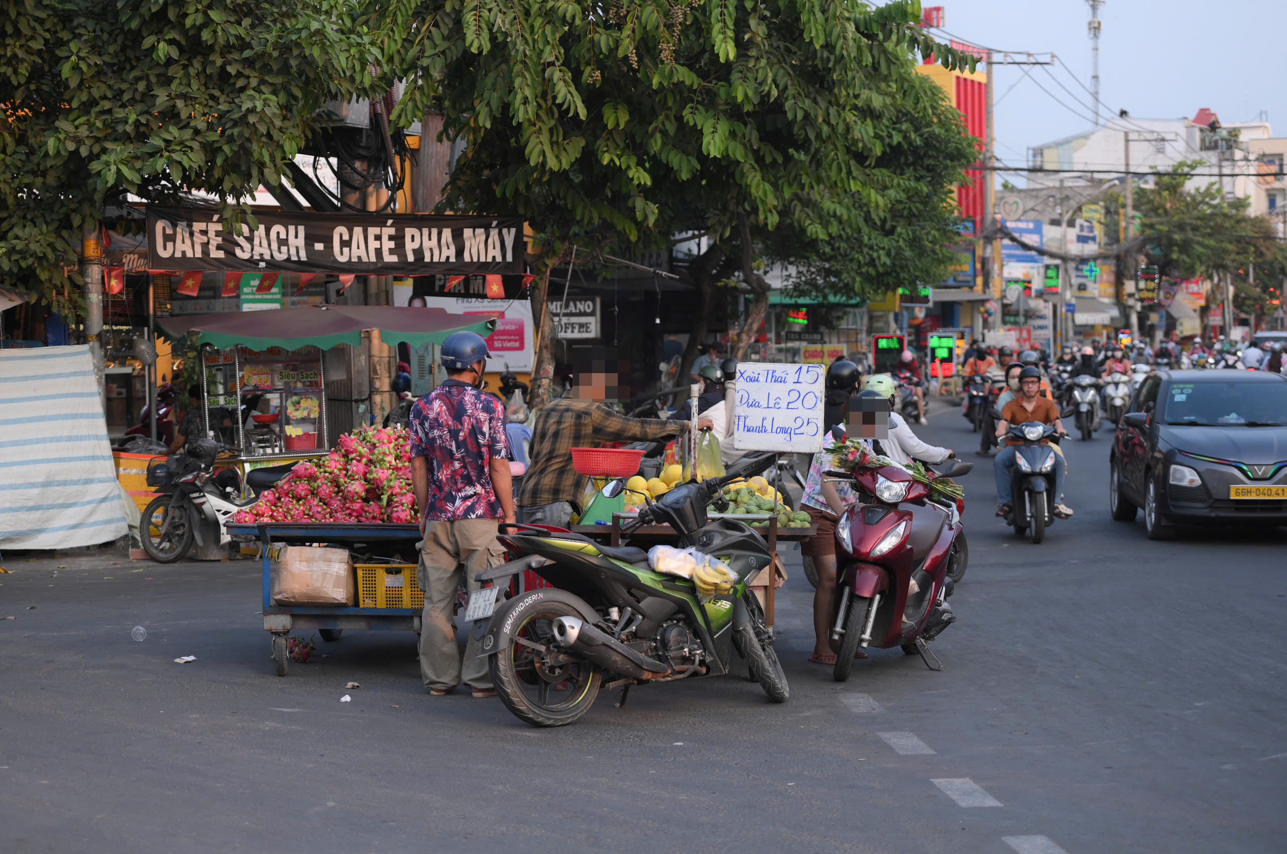 Tại khu vực ngã ba giao giữa đường 40 và đường Hiệp Bình, tình trạng lấn chiếm diễn ra phức tạp hơn. Nhiều xe bán trái cây dựng ngay giữa ngã ba, người bán và người mua dừng đỗ chiếm hết lối đi. Tại thời điểm ghi nhận, có ít nhất hai xe kéo bán trái cây bày hàng ngay trung tâm giao lộ, người mua vẫn dừng lại giao dịch, gây cản trở giao thông.
