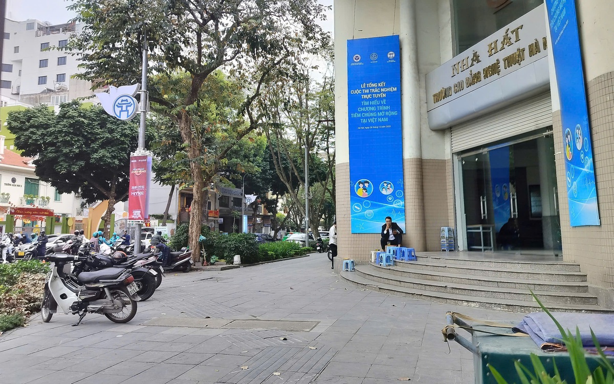 Khu vực vỉa hè trước Trường Cao đẳng Nghệ thuật Hà Nội không còn cảnh đông người ngồi uống trà đá như trước