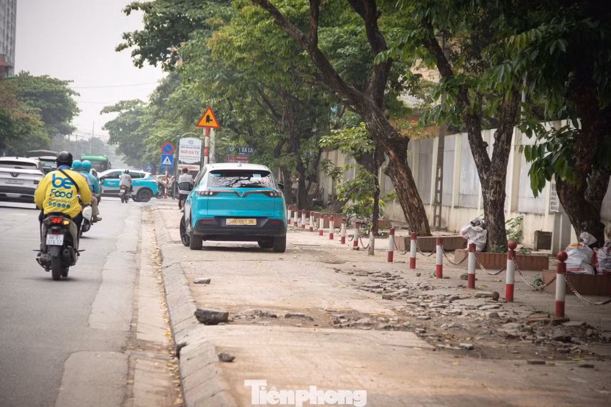 Không chỉ hư hỏng do thời gian, một số khu vực còn bị ảnh hưởng bởi phương tiện thường xuyên leo lề, dừng đỗ đón trả khách, khiến lớp gạch lát càng bị phá vỡ nghiêm trọng hơn.