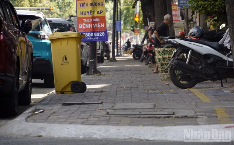 Có đoạn vỉa hè thông thoáng nhưng có khúc cũng bị lấn chiếm bởi xe máy.