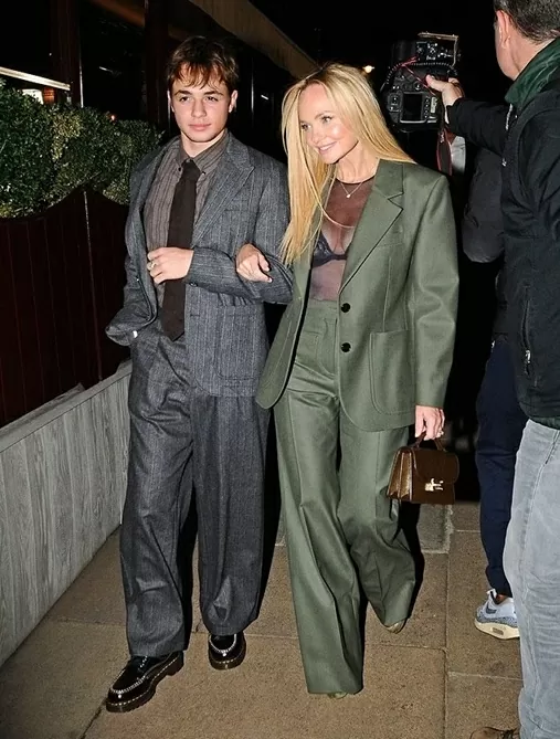 Emma Bunton rạng rỡ bên con trai 18 tuổi. Thành viên duy nhất không dự buổi chiếu là Mel B, tuy nhiên nữ ca sĩ - người đang công tác tại Mỹ - gửi hoa chúc mừng Victoria.
