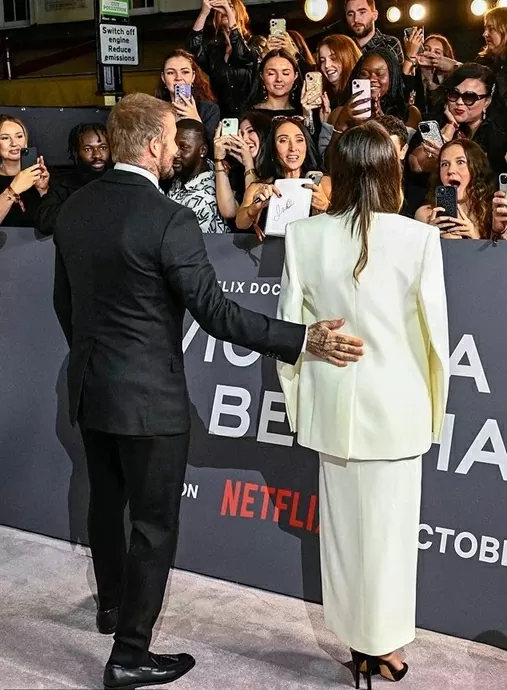 Tại buổi chiếu phim, Victoria cảm ơn chồng con, bao gồm cả con trai vắng mặt Brooklyn, những người thân và bạn bè đã luôn đồng hành. Phim tài liệu "Victoria Beckham" dài 3 tập, theo chân cuộc đời và sự nghiệp của Victoria từ ngôi sao nhạc pop đến nhà thiết kế, điều hành doanh nghiệp thời trang và làm đẹp mang tên mình. Phim ra mắt vào ngày 9/10 trên Netflix, hai năm sau khi phim tài liệu riêng về David Beckham gây tiếng vang.