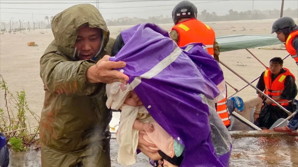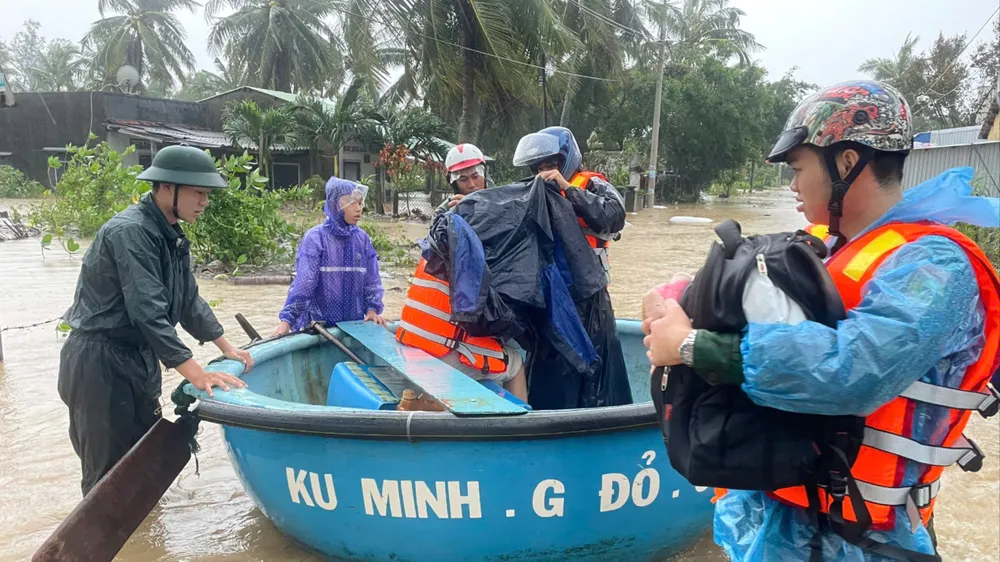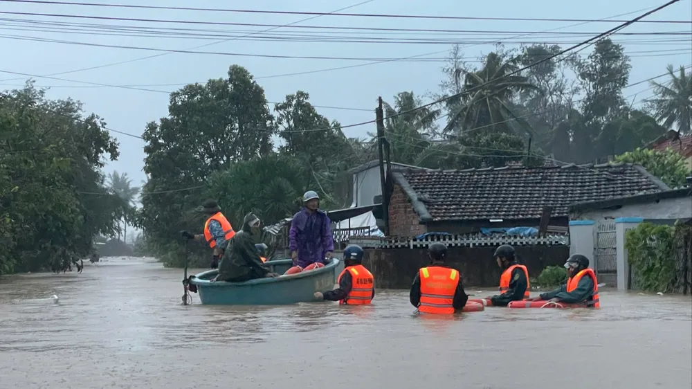 Trước đó, sáng 19-11, lực lượng của Đồn Biên phòng Xuân Đài phối hợp sơ tán dân khỏi vùng ngập lụt thì nhận được tin có bé trai hai tháng tuổi và mẹ bị kẹt trong căn nhà tại khu phố Bình Thạnh, phường Xuân Đài.
