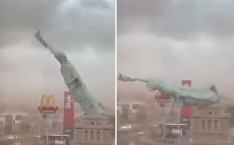 Đoạn video ghi lại hình ảnh bức tượng Nữ thần Tự Do bản sao gục dần từ trên cao xuống đất đang được chia sẻ rất nhanh chóng trên mạng xã hội, có lẽ vì nó là hình ảnh thật sự ấn tượng cho thấy rằng một khi thiên nhiên đã phô diễn sức mạnh thì vô cùng khó chống đỡ.