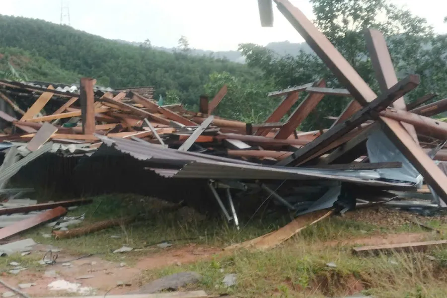 Nhà người dân ở xã Thông Thụ (tỉnh Nghệ An) bị lốc làm đổ sập hoàn toàn.