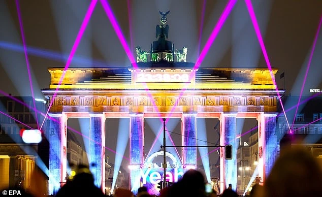 Những người tham gia ăn mừng tại sự kiện "Yeah 26" ở Cổng Brandenburg tại thủ đô Berlin (Đức) đêm 31-12-2025. Ảnh: EPA