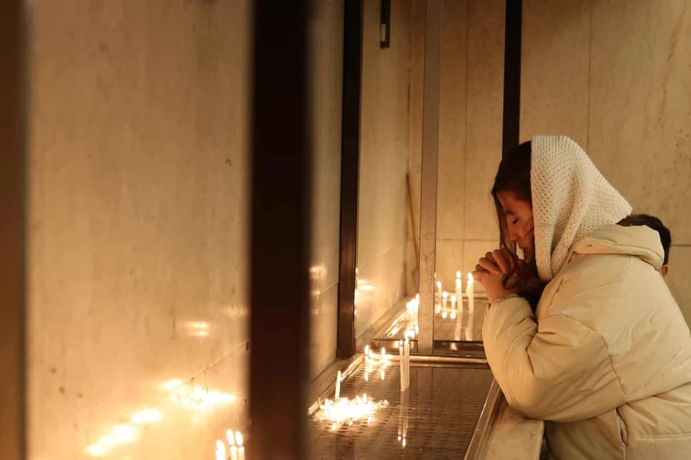 Một phụ nữ theo đạo Cơ đốc thắp nến và cầu nguyện ở thủ đô Tehran (Iran) đêm 31-12-2025. Ảnh: Abedin Taherkenareh/EPA