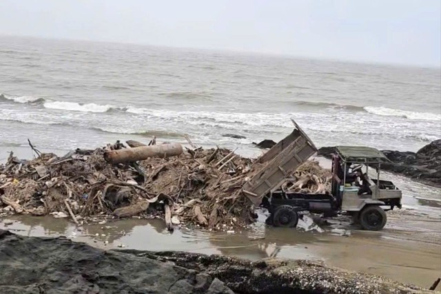 Sau khi nhận lời, anh Q. và anh H. điều khiển xe công nông vận chuyển rác từ khu vực bãi biển do anh C. quản lý, đổ sát mép nước tại khu vực mỏm Hòn Bò. Số rác thải trên chủ yếu là các loại cây thân gỗ, gốc rễ và rác tự nhiên do sóng biển đánh dạt vào bờ, tích tụ từ mùa mưa bão năm 2025.