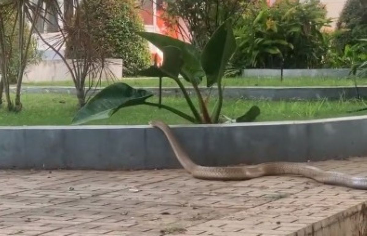Video rắn hổ trâu trườn vào khuôn viên bệnh viện.