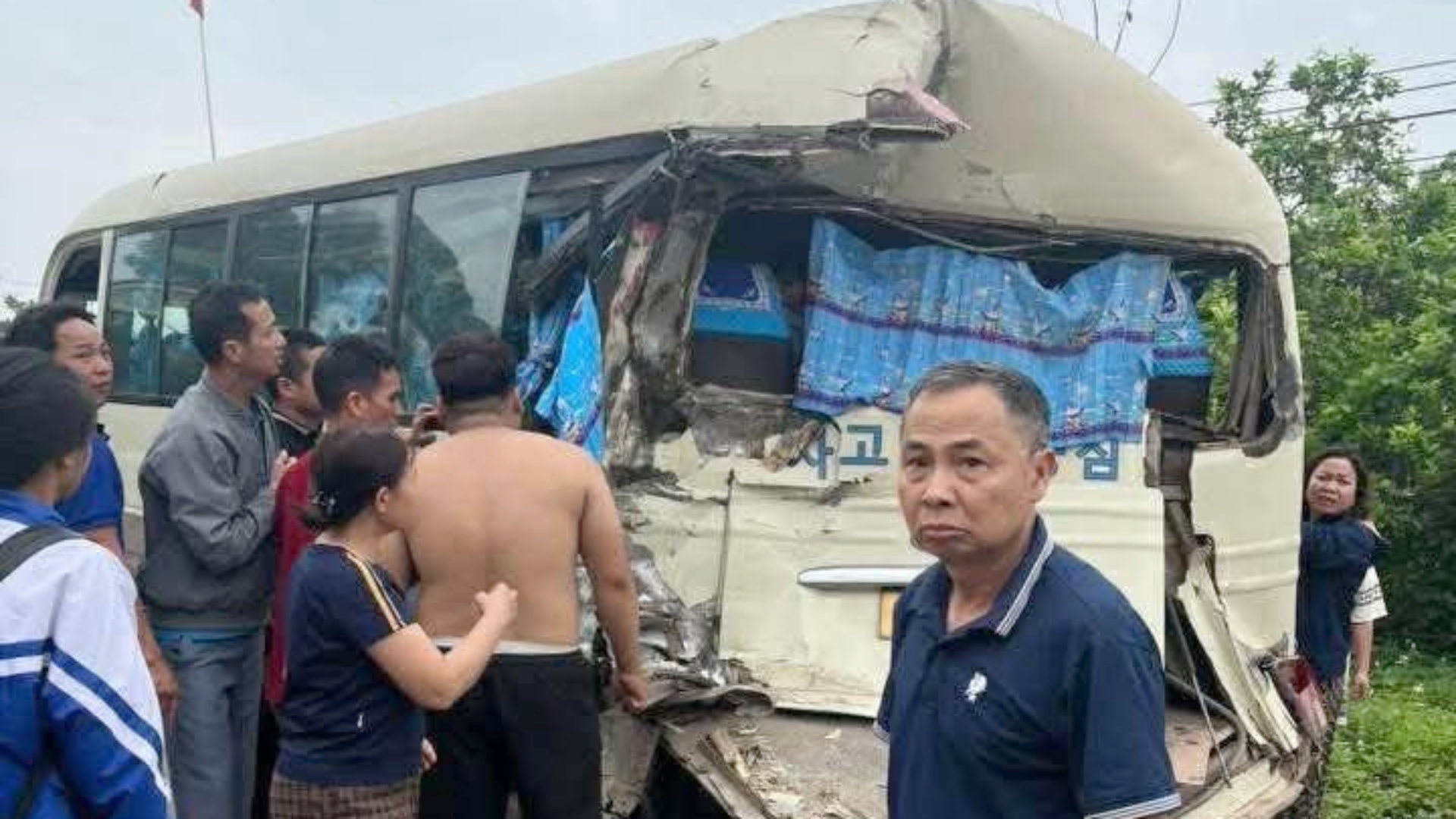 Chiếc xe khách bị hư hỏng nặng.