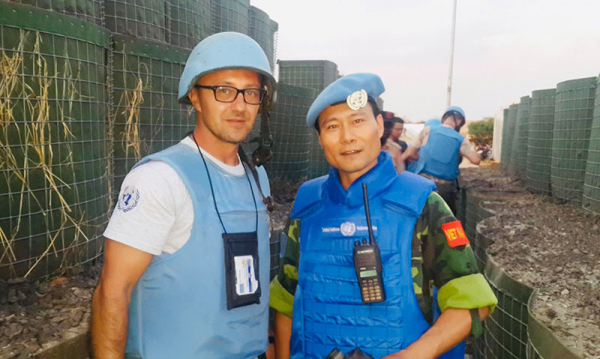 Sĩ quan Mạc Đức Trọng cùng đồng nghiệp quốc tế ở Nam Sudan.