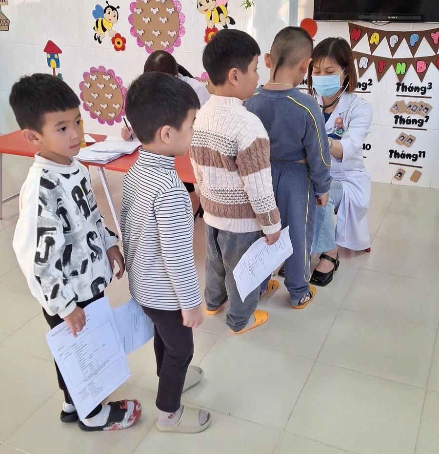 Một buổi khám sức khỏe đầu năm tại Trường Mầm non 2 (Lâm Đồng). Ảnh: Gia Hưng