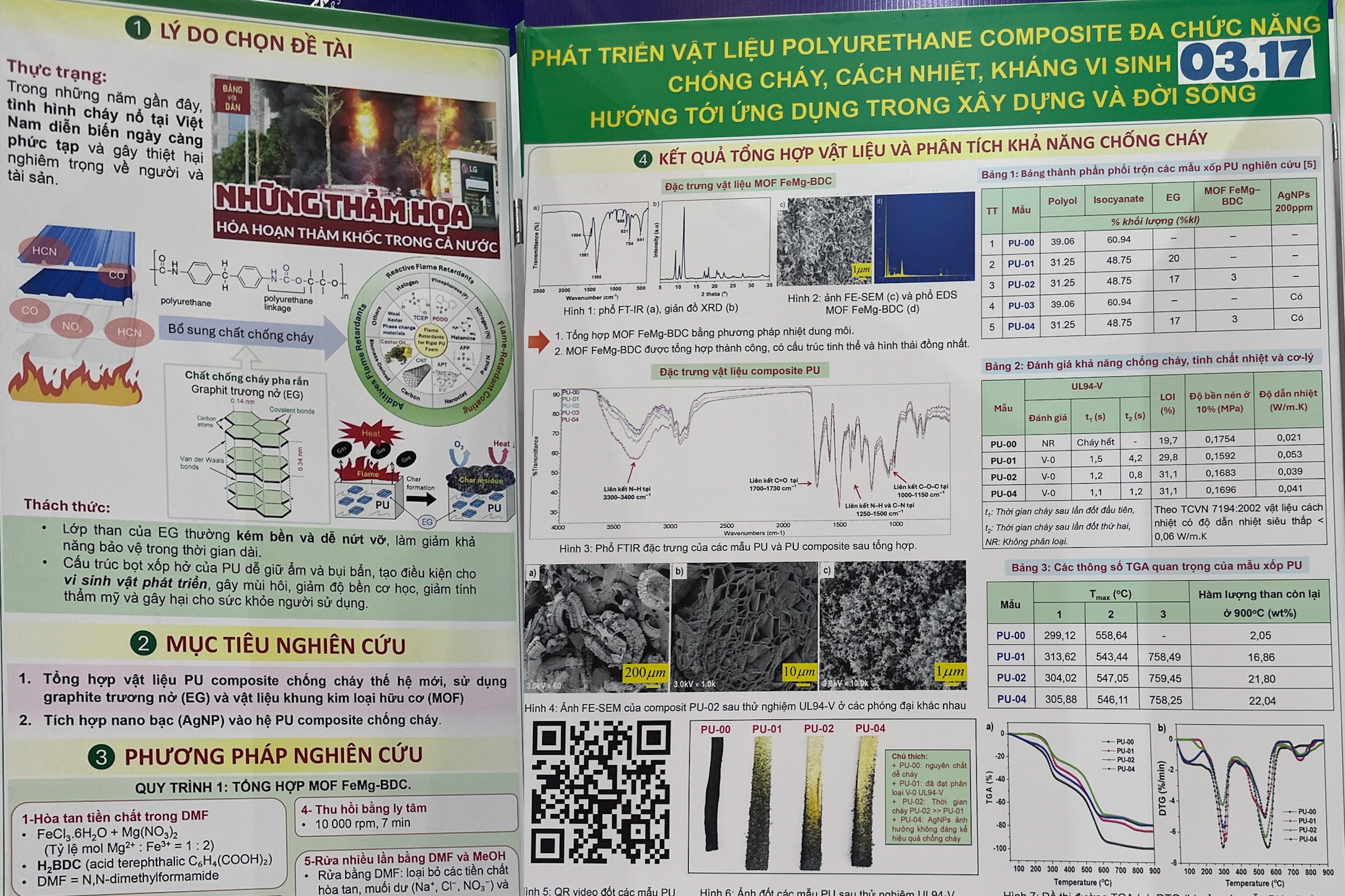 Poster dự án “Phát triển vật liệu polyurethane composite đa chức năng chống cháy, cách nhiệt, kháng vi sinh hướng tới ứng dụng trong xây dựng và đời sống”. Ảnh: Diễn đàn Liêm chính khoa học