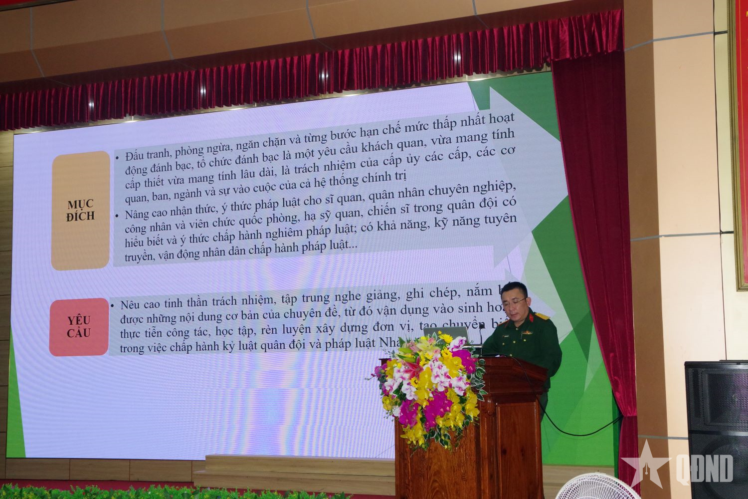 Báo cáo viên Viện kiểm sát Quân sự khu vực 43 giới thiệu chuyên đề tại Kho K3 (Cục Hậu cần - Kỹ thuật, Quân khu 4).