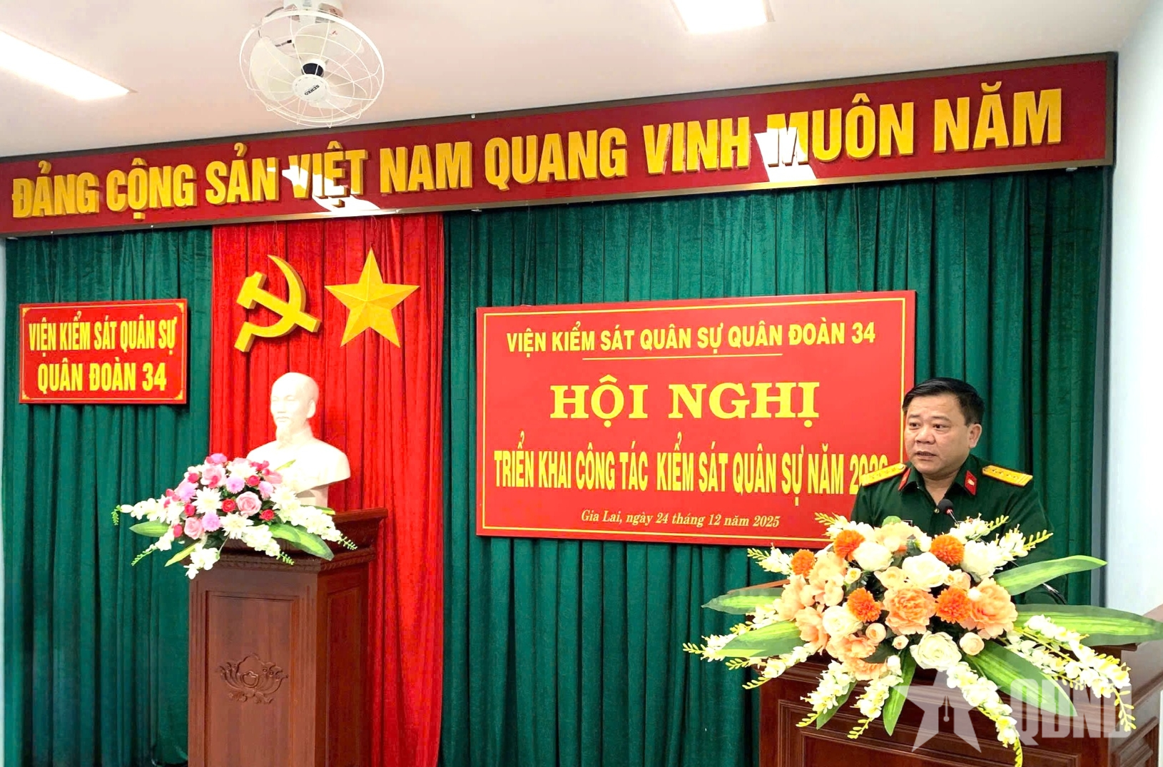 Thượng tá Nguyễn Trọng Nghĩa, Viện trưởng Viện kiểm sát quân sự Quân đoàn 34 phát biểu tại hội nghị.