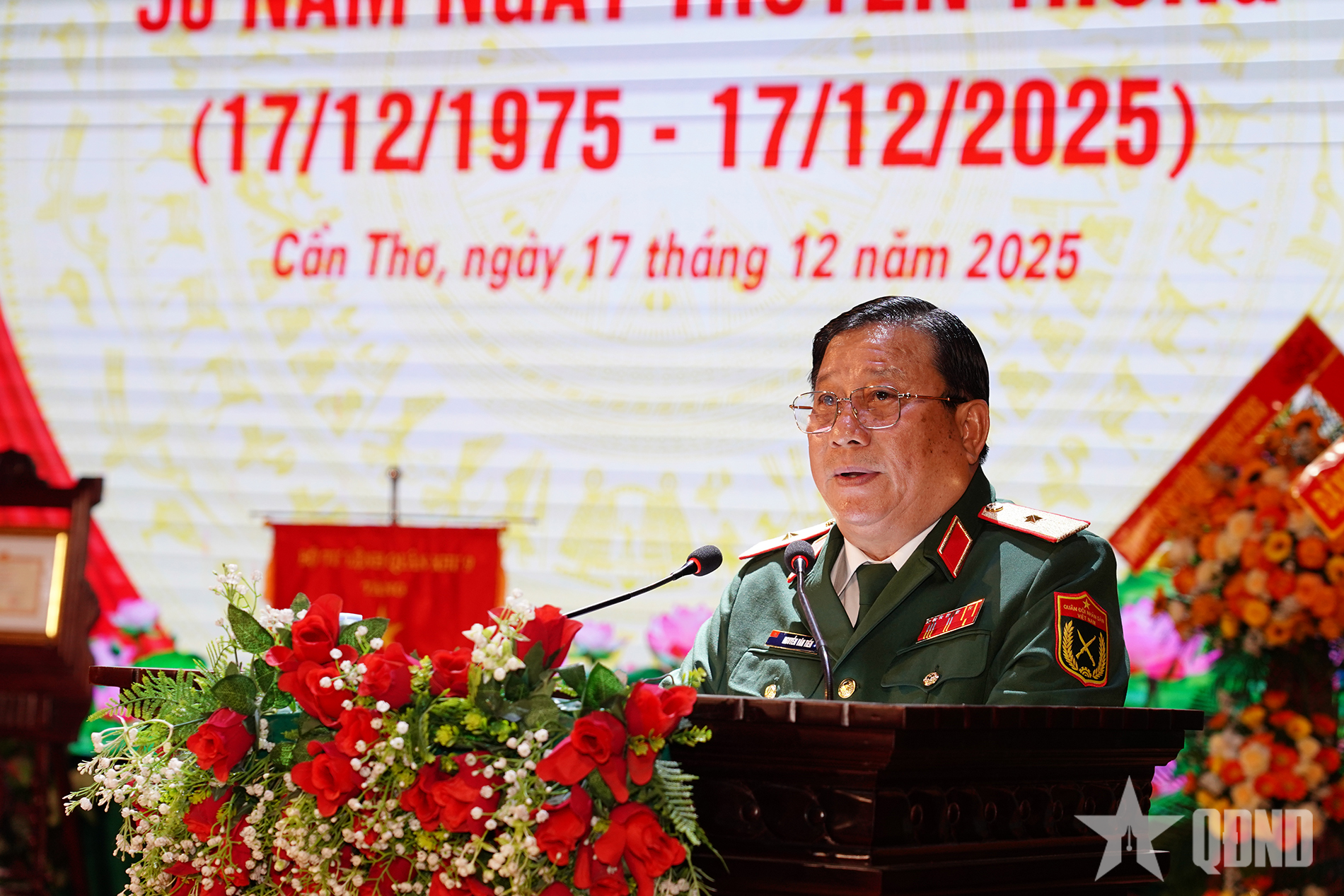 Thiếu tướng Nguyễn Văn Tiền, Phó tư lệnh Quân khu 9 dự và phát biểu tại lễ kỷ niệm.