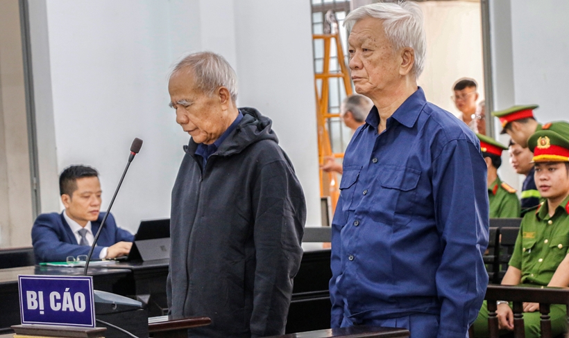 Bị cáo Nguyễn Chiến Thắng (phải) và Đào Công Thiên tại một phiên tòa vào tháng 12/2023. Ảnh: Xuân Hoát
