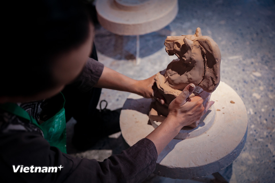 Linh vật được nặn khối, khắc nét thủ công, tính toán kỹ độ co, độ chịu lực. (Ảnh: Hoài Nam/Vietnam+)