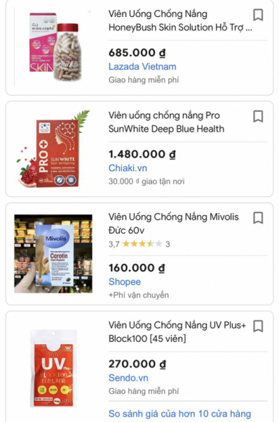 Những tháng gần đây, viên uống chống nắng trở thành sản phẩm được chị em tìm kiếm nhiều. Chỉ cần nhập từ khóa trên mạng xã hội, hàng loạt loại từ nội địa đến hàng xách tay từ Mỹ, Nhật, Đức… hiện ra với mức giá dao động từ 150.000 đến hơn 2,5 triệu đồng/hộp. Trên Facebook, Instagram hay TikTok, hàng loạt fanpage, shop online như “Healthy Skin V..”, “Beauty Plus Store”, “SunCare Shop”, “Mivolis Official VN”, “Malap Skin” liên tục đăng bài giới thiệu, livestream tư vấn trực tiếp công dụng viên uống, đồng thời chạy quảng cáo nhắm vào nhóm khách hàng nữ 18-40 tuổi. Đi kèm sự đa dạng đó là vô số lời quảng cáo “thần kỳ”, trong khi không ít sản phẩm mập mờ nguồn gốc, khiến người mua khó phân biệt thật - giả.